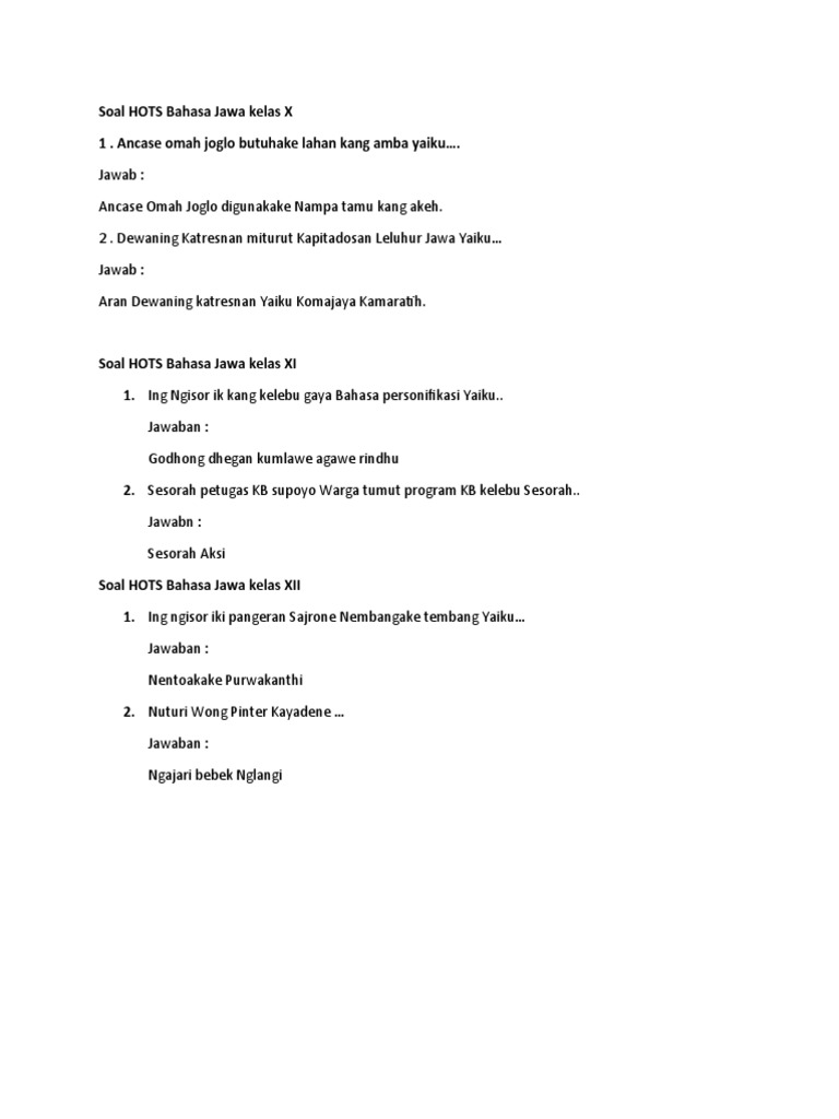 40 Soal Dan Jawaban Bab Sesorah Soal Pilihan Ganda Bahsa Jawa Kelas Xi Guardfasr Soal Bahasa Jawa Kelas 6 Semester 2 Kurikulum 2013 Dan Jawaban File Guru Site from docplayer.info Lengkap latihan soal ukk untuk smp mts kelas 8 semester 2 genap belajar memang dapat dikatakan wajib untuk setiap orang dengan belajar anda menjadi tahu belajar tidak harus melalui edukasi formal namun pun informal. 100+ contoh soal toeic dan jawabannya lengkap. Contoh soal dan jawaban administrasi kepegawaian. Ayo jika mau diskusi tentang metode lifo fifo dan average silahkan kunjungi. Contoh soal dan jawaban utang obligasi. 1 april 2006 terjual 500 lembar obligasi 12 nominal 100 000 lembar kurs 102.kami mengumpulkan soal dan jawaban dari tts teka teki silang populer yang biasa muncul di koran kompas jawa pos koran tempo dll. Contoh soal excel if dan jawaban. Pencatatan persediaan periodik dan perpetual contoh transaksi penyajian dalam laporan laba rugi dewan direksi ichiro corporation sedang mempertimbangkan apakah akan mengins.