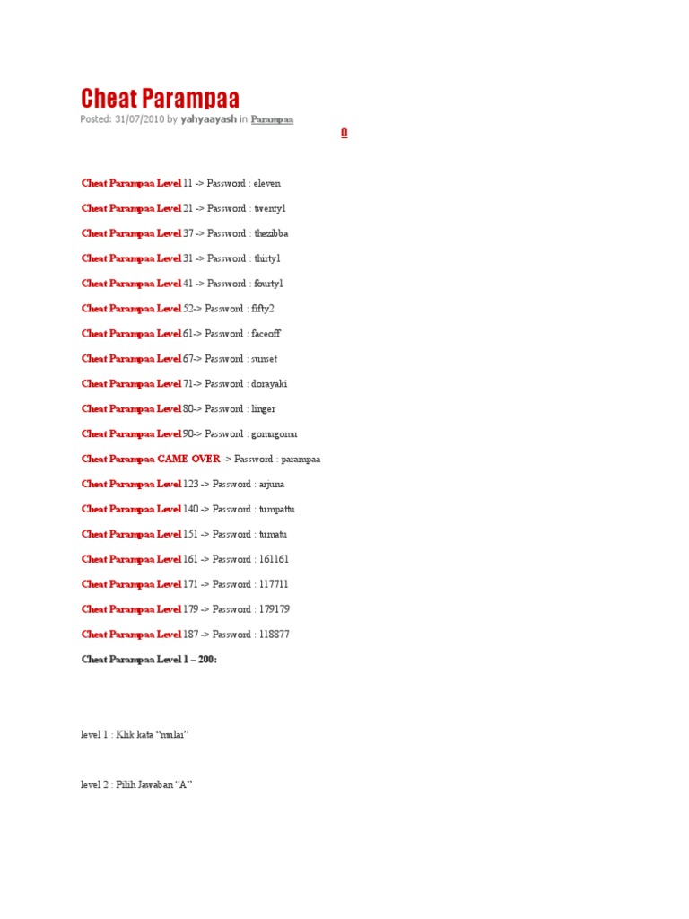 Cheat lengkap game quiz parampaa 1 1.klik mulai 2.klik a 3.klik lingkaran kecil di huruf i yg adaa ditulisan kecil 4.klik ay 5.klik b 6.klik tulisan yup! Siapa sih yang gak kenal quiz parampa yang diusung oleh masova tempo dulu. Mungkin sudah ada yang mengenal game ini atau juga ada yang belum. Jawaban quiz parampaa, password quiz parampaa, clue quiz parampaa, cheat quiz parampaa, downloads quiz parampaa, parampaa wallpapers, parampaa emoticons. Level 1 klik tulisan mulai 2.